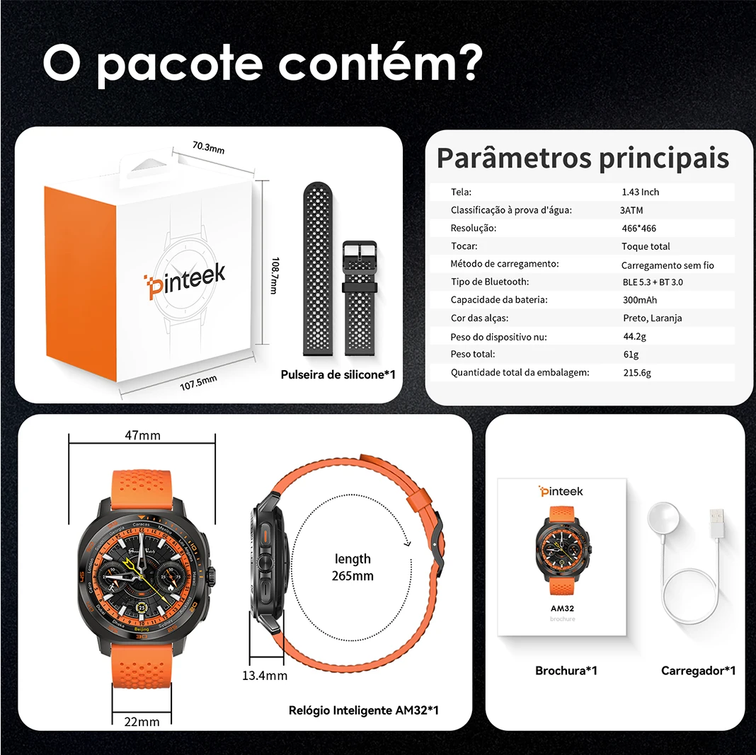 Smartwatch Masculino Feminino Am32 47mm Amoled Sport Chat Gpt